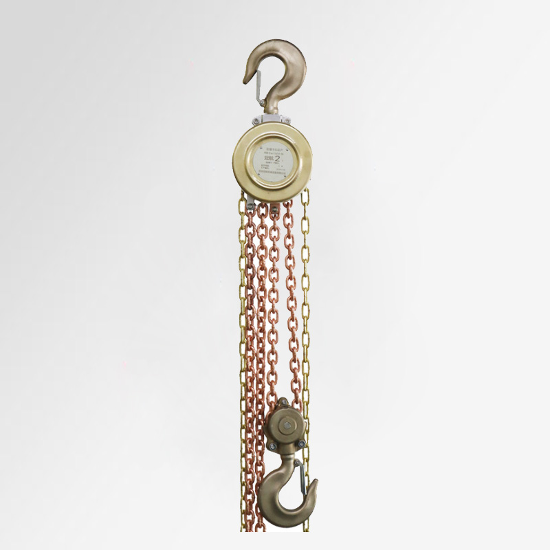 冠航防爆手拉葫蘆,可在易燃易爆場所使用,在有火患和爆炸危險的施工場所下比普通起重設(shè)備更為安全,可有效避免潛在爆炸危險;